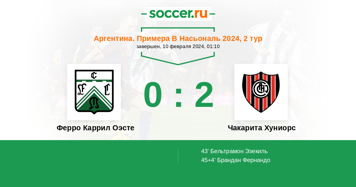 Протокол матча Ферро Каррил Оэсте против Чакарита Хуниорс