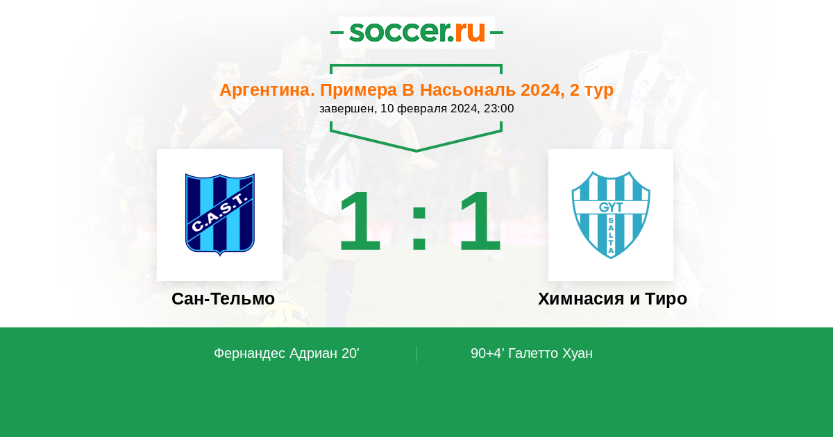Протокол матча Сан-Тельмо против Химнасия и Тиро