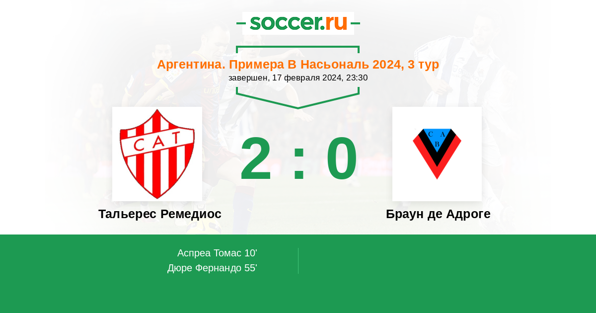 Протокол матча Тальерес Ремедиос против Браун де Адроге