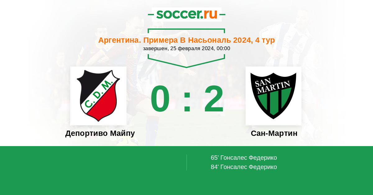 Протокол матча Депортиво Майпу против Сан-Мартин