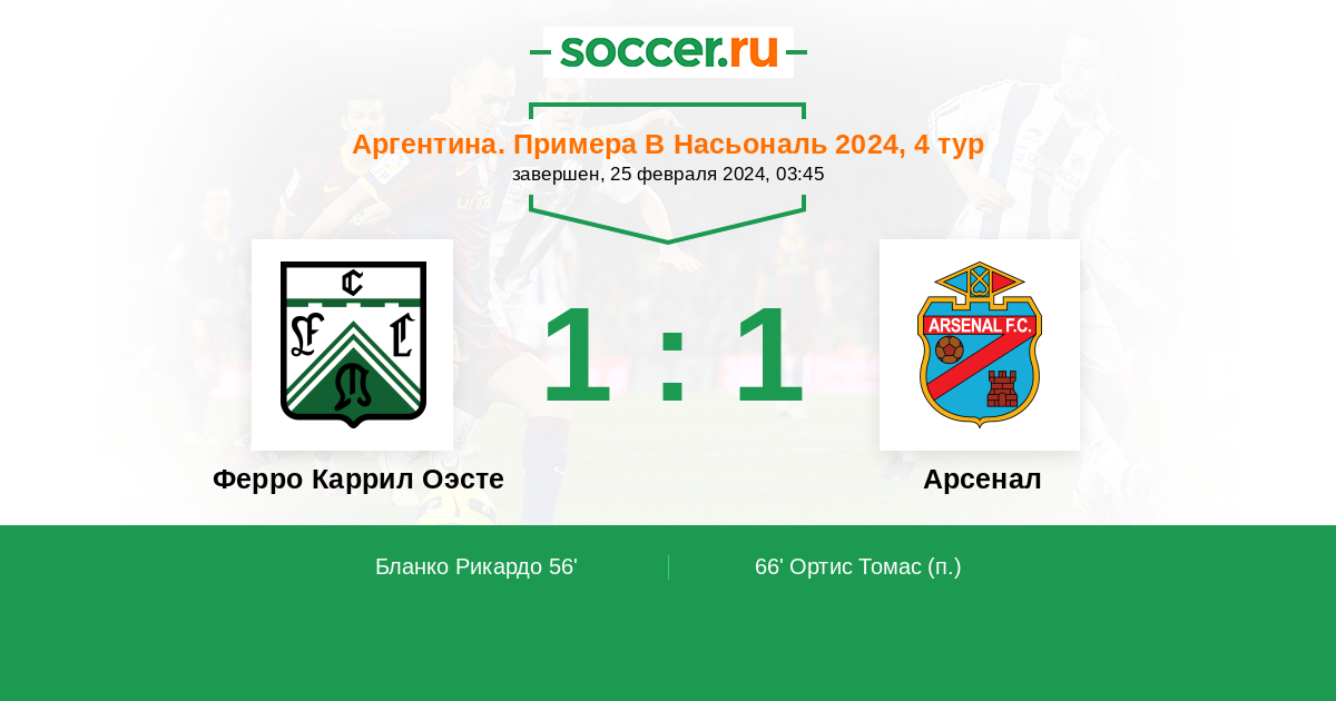 Протокол матча Ферро Каррил Оэсте против Арсенал