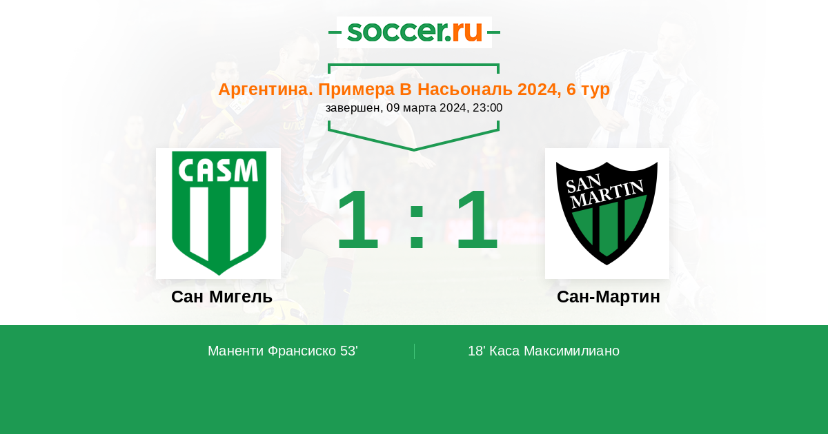 Протокол матча Сан Мигель против Сан-Мартин