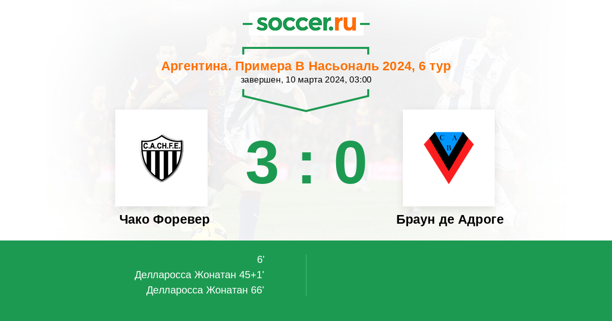 Протокол матча Чако Форевер против Браун де Адроге