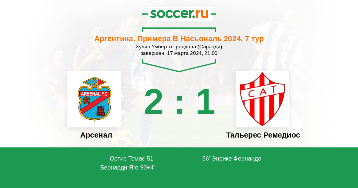 Протокол матча Арсенал против Тальерес Ремедиос