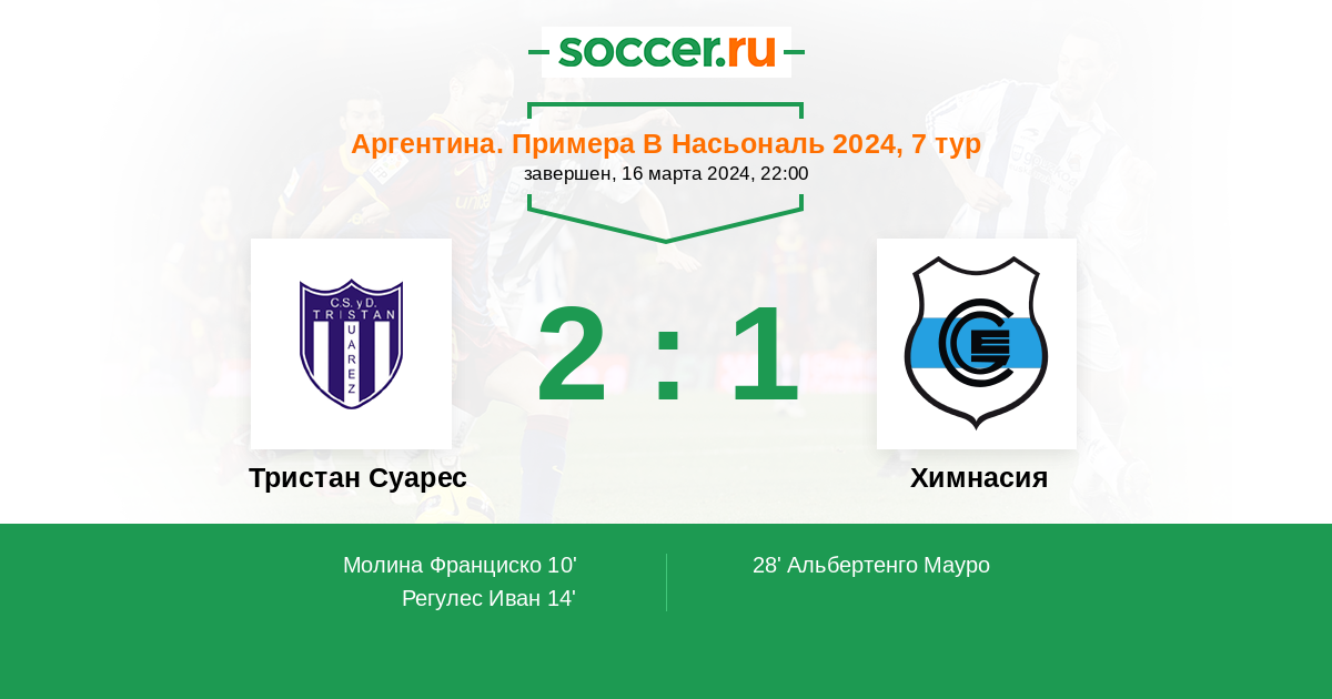 Протокол матча Тристан Суарес против Химнасия