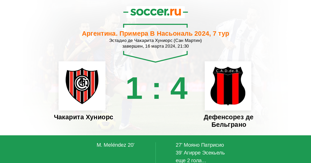 Протокол матча Чакарита Хуниорс против Дефенсорез де Бельграно