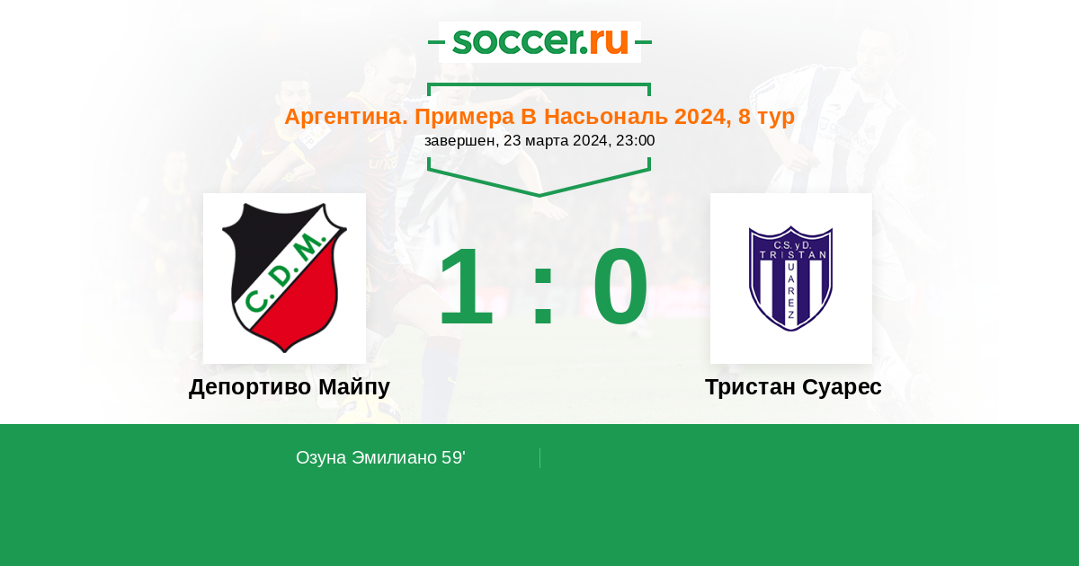 Протокол матча Депортиво Майпу против Тристан Суарес