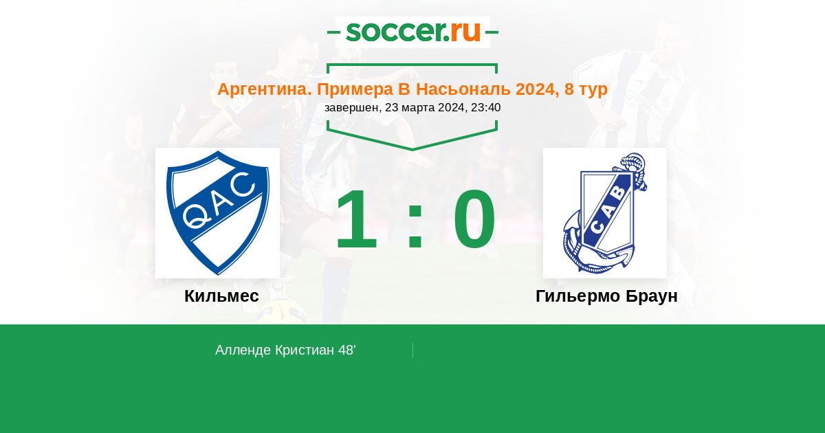 Протокол матча Кильмес против Гильермо Браун