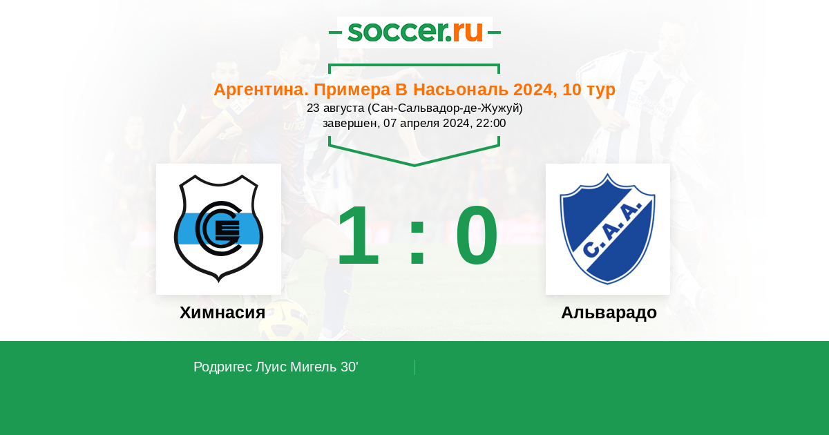Протокол матча Химнасия против Альварадо