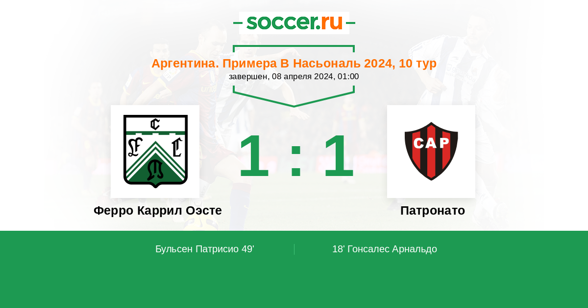 Протокол матча Ферро Каррил Оэсте против Патронато