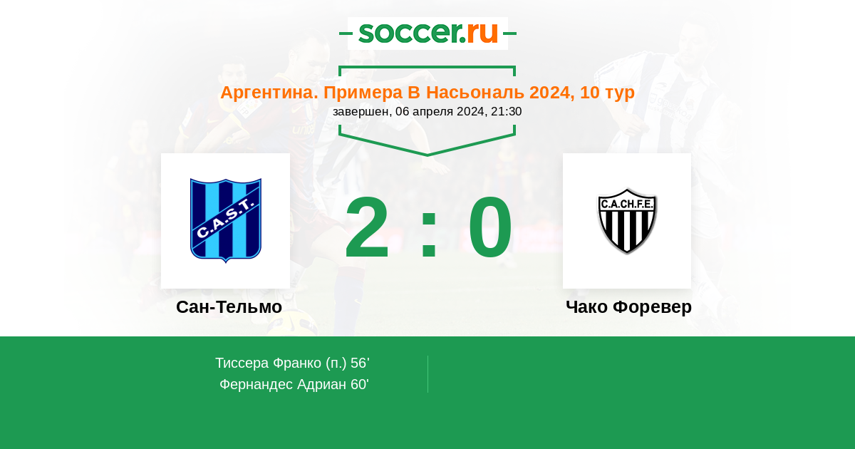 Протокол матча Сан-Тельмо против Чако Форевер