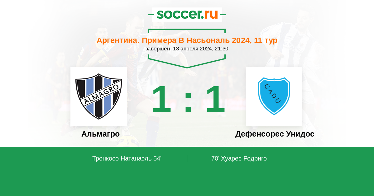 Протокол матча Альмагро против Дефенсорес Унидос
