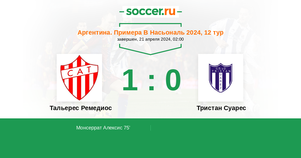 Протокол матча Тальерес Ремедиос против Тристан Суарес