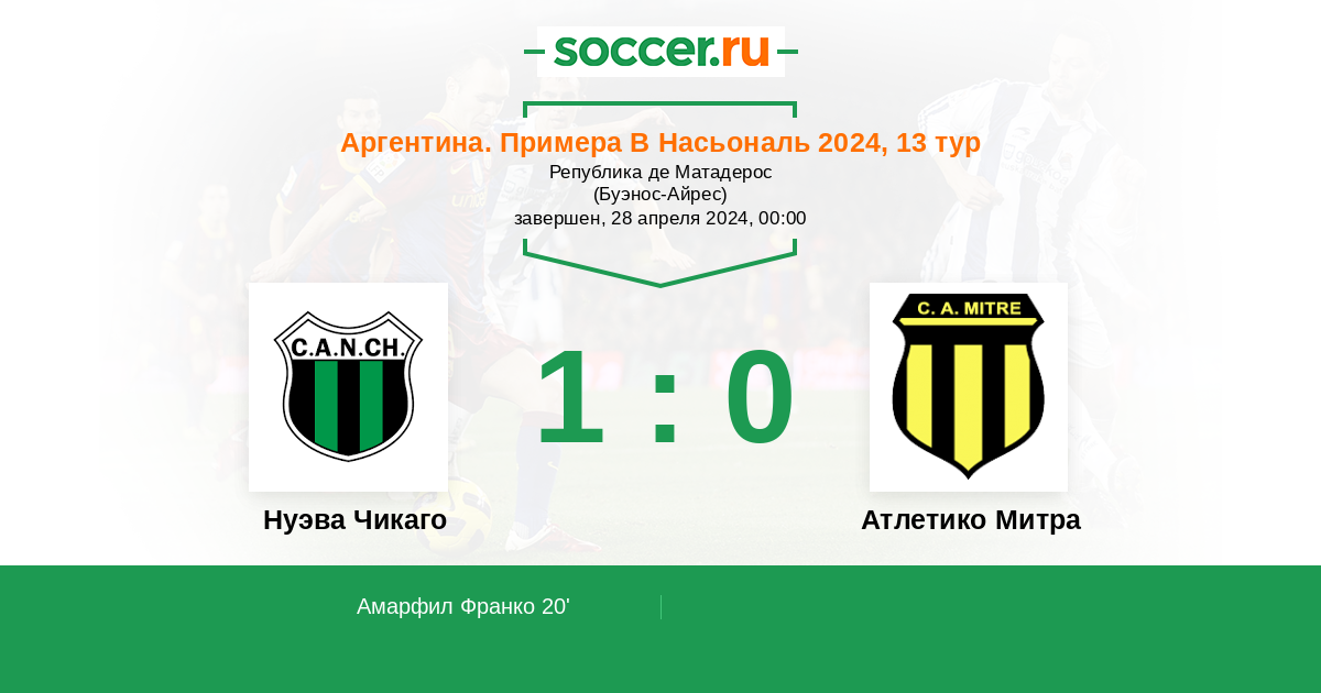 Протокол матча Нуэва Чикаго против Атлетико Митра
