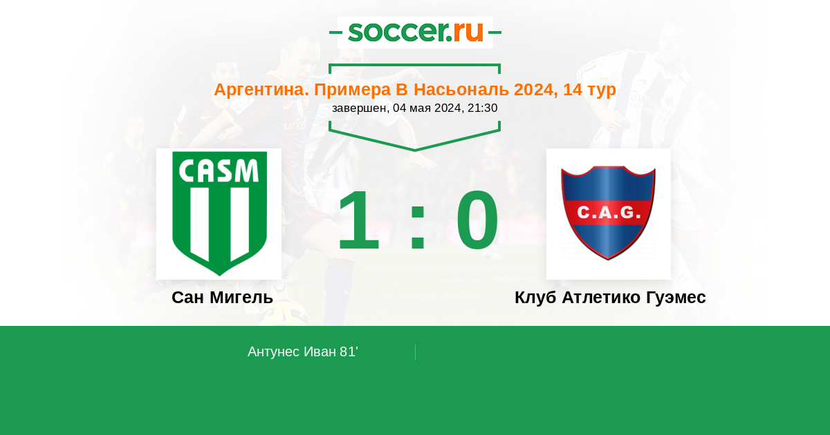 Протокол матча Сан Мигель против Атлетико Гуэмес