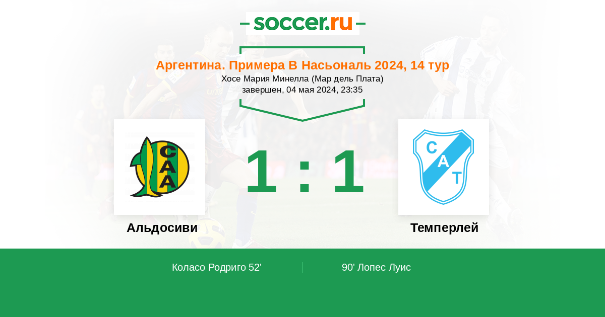 Протокол матча Альдосиви против Темперлей