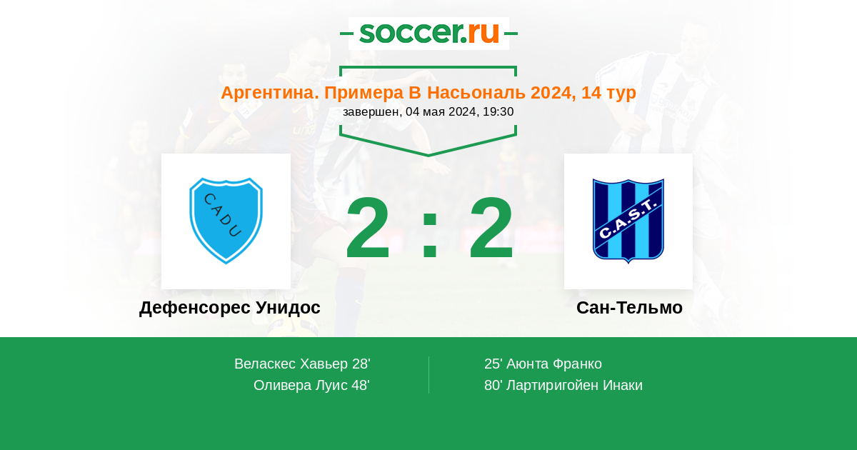 Протокол матча Дефенсорес Унидос против Сан-Тельмо
