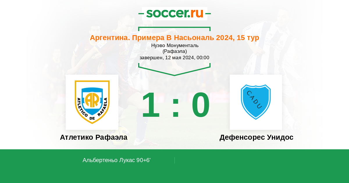 Гол90+6' (1:0) Альбертеньо Лукас