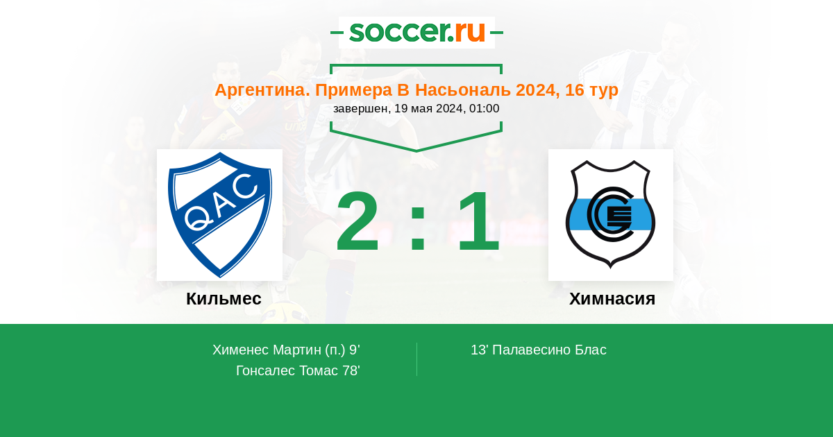 Протокол матча Кильмес против Химнасия