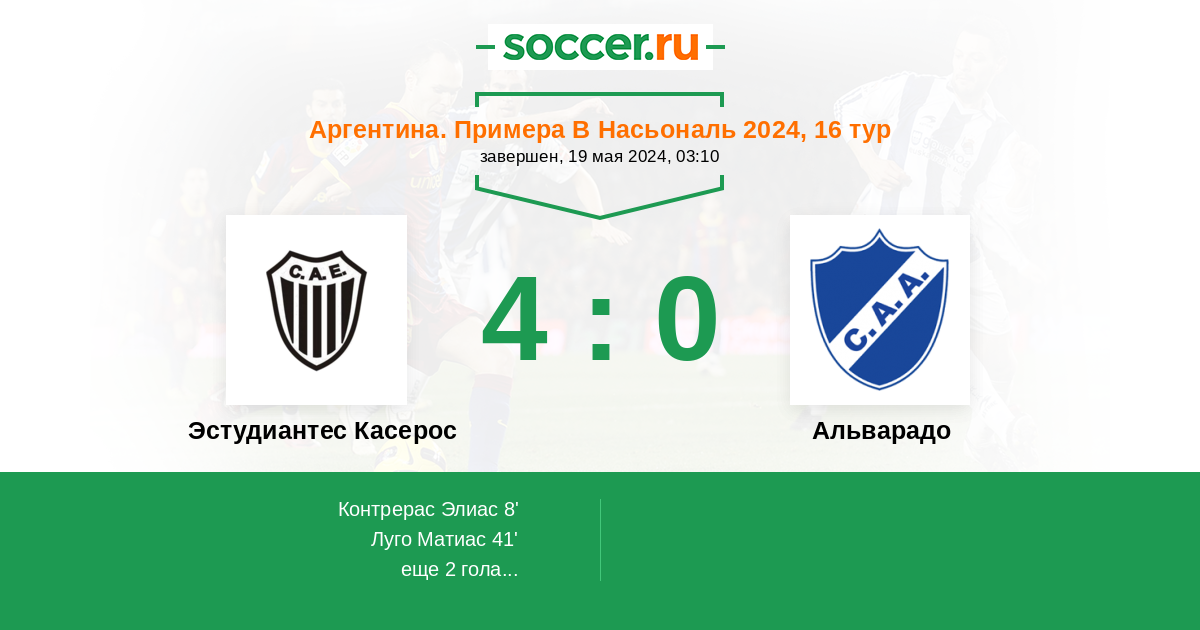 Протокол матча Эстудиантес Касерос против Альварадо