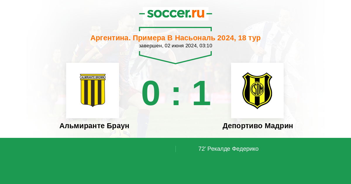 Протокол матча Альмиранте Браун против Депортиво Мадрин