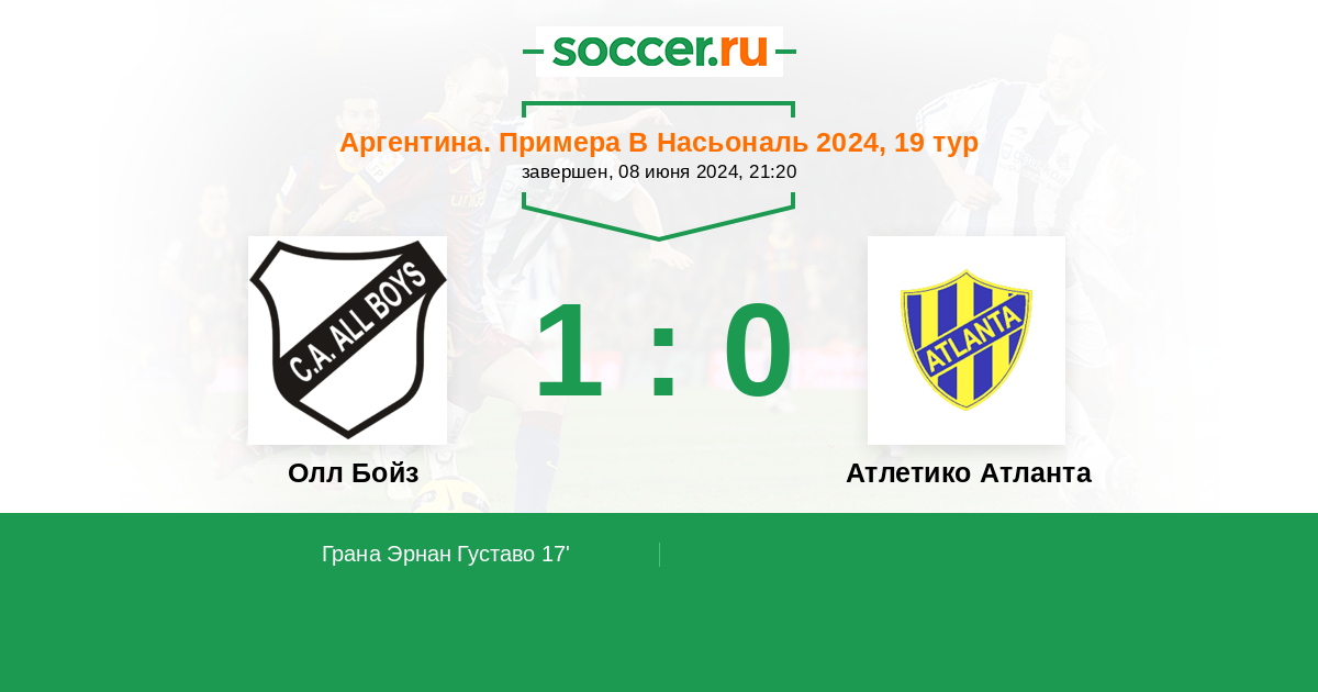 Протокол матча Олл Бойз против Атлетико Атланта