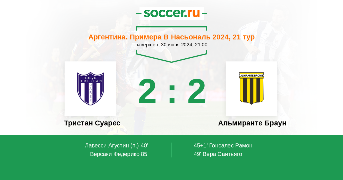 Протокол матча Тристан Суарес против Альмиранте Браун