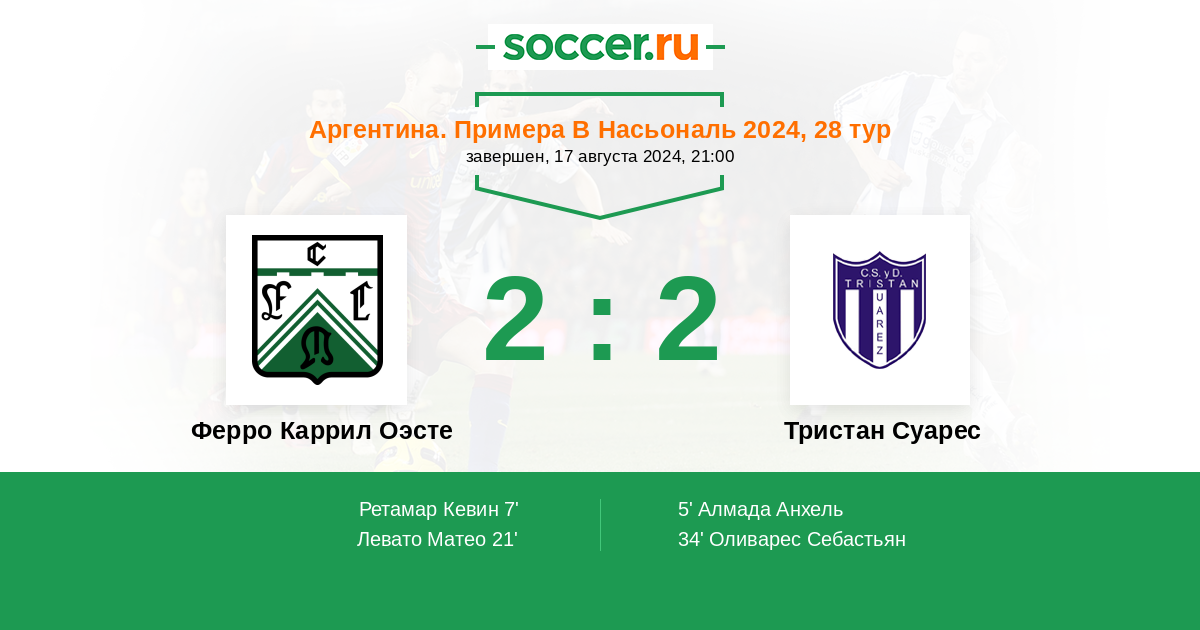 Протокол матча Ферро Каррил Оэсте против Тристан Суарес