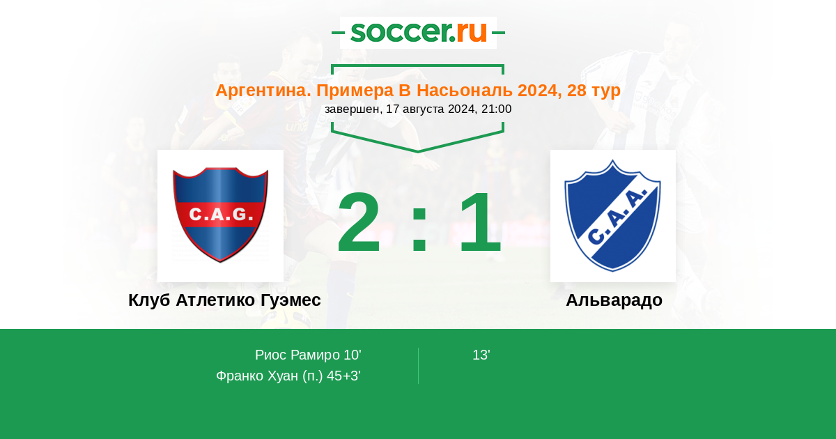Протокол матча Атлетико Гуэмес против Альварадо