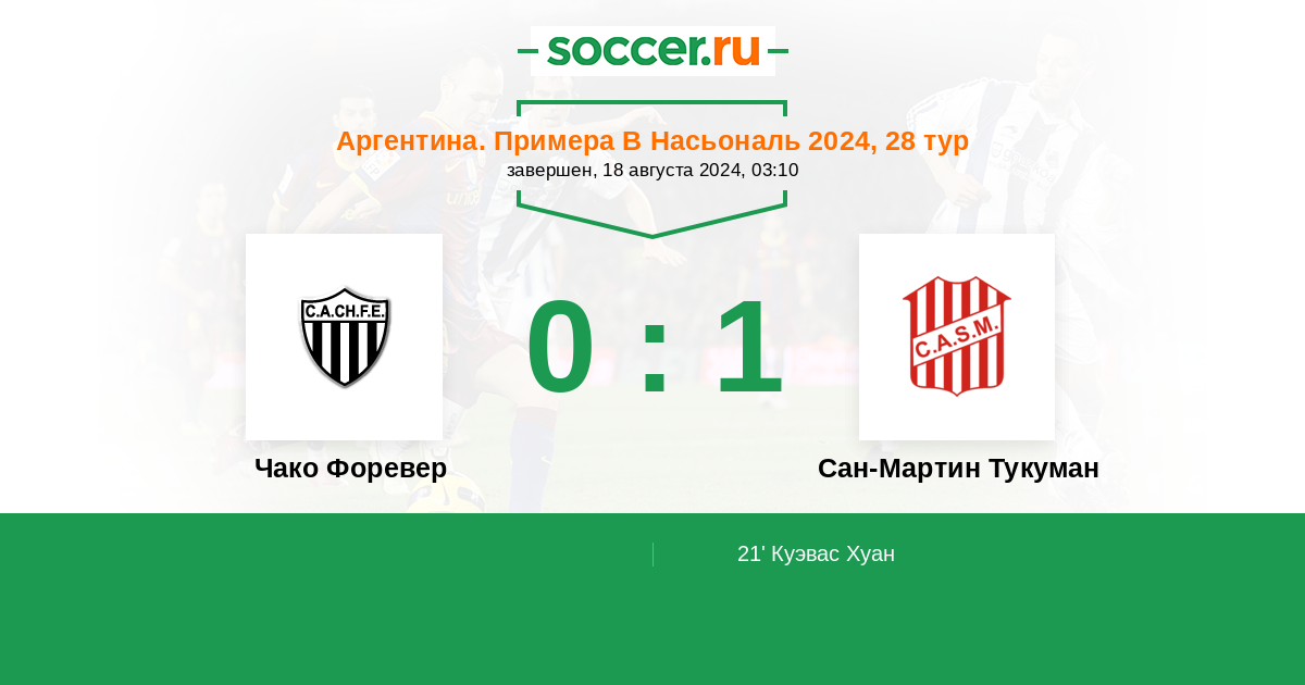 Протокол матча Чако Форевер против Сан-Мартин Тукуман