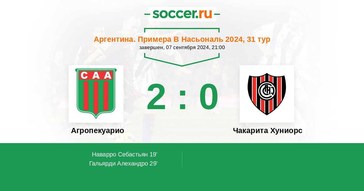 Протокол матча Агропекуарио против Чакарита Хуниорс