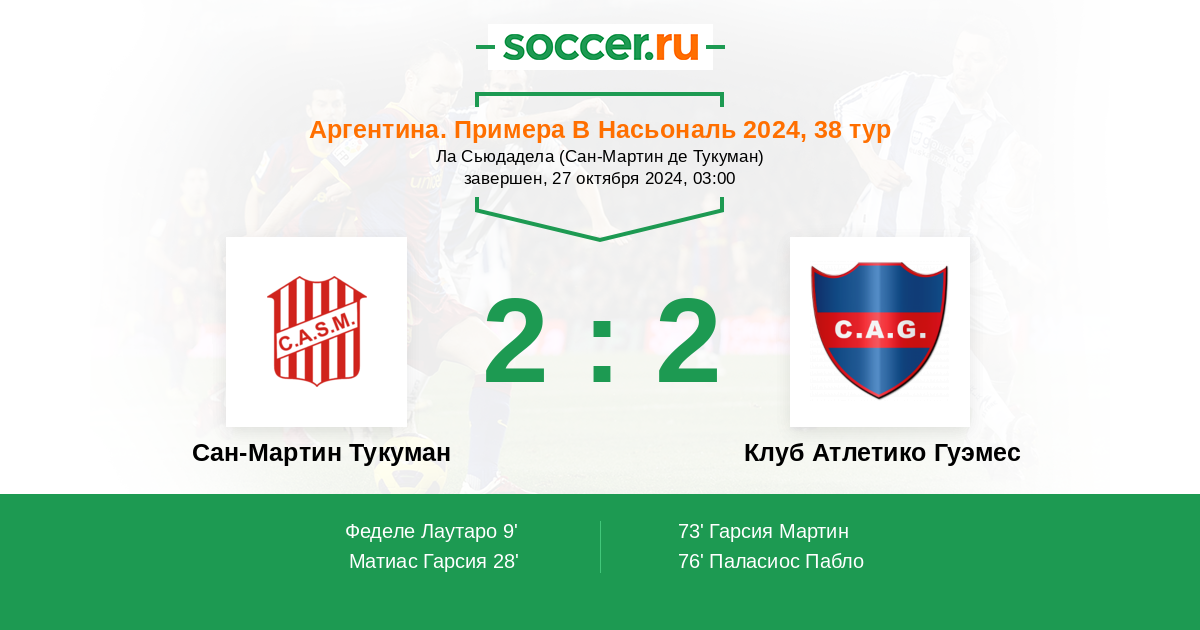 Протокол матча Сан-Мартин Тукуман против Атлетико Гуэмес