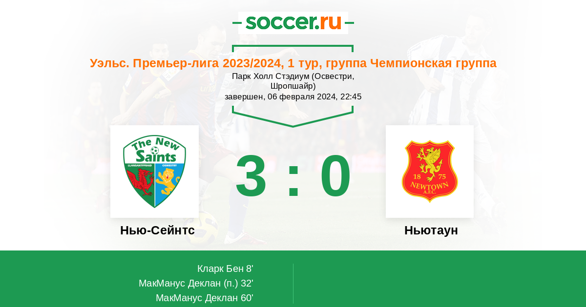 Протокол матча Нью-Сейнтс против Ньютаун