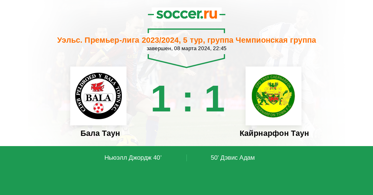 Протокол матча Бала Таун против Кайрнарфон Таун