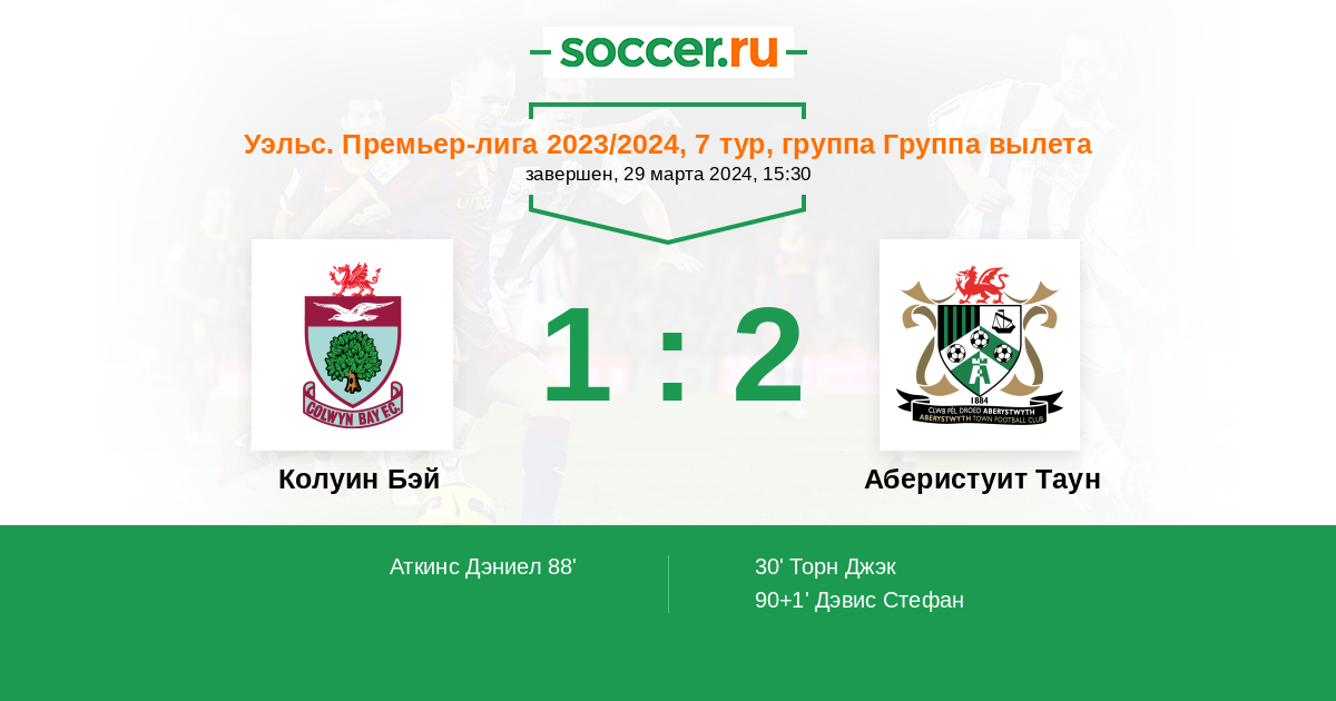 Протокол матча Колуин Бэй против Аберистуит Таун