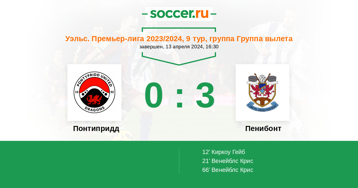 Протокол матча Понтипридд против Пенибонт