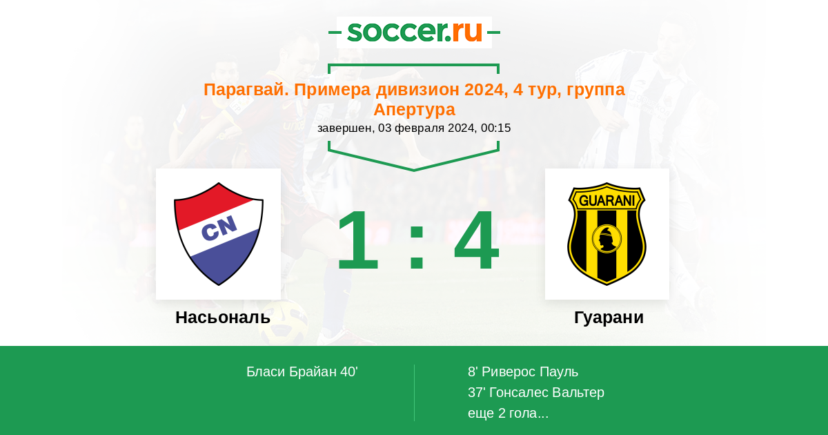 Протокол матча Насьональ против Гуарани