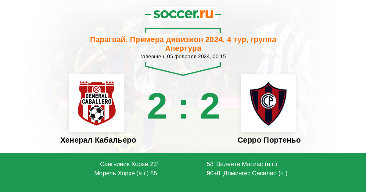 Протокол матча Хенерал Кабальеро против Серро Портеньо