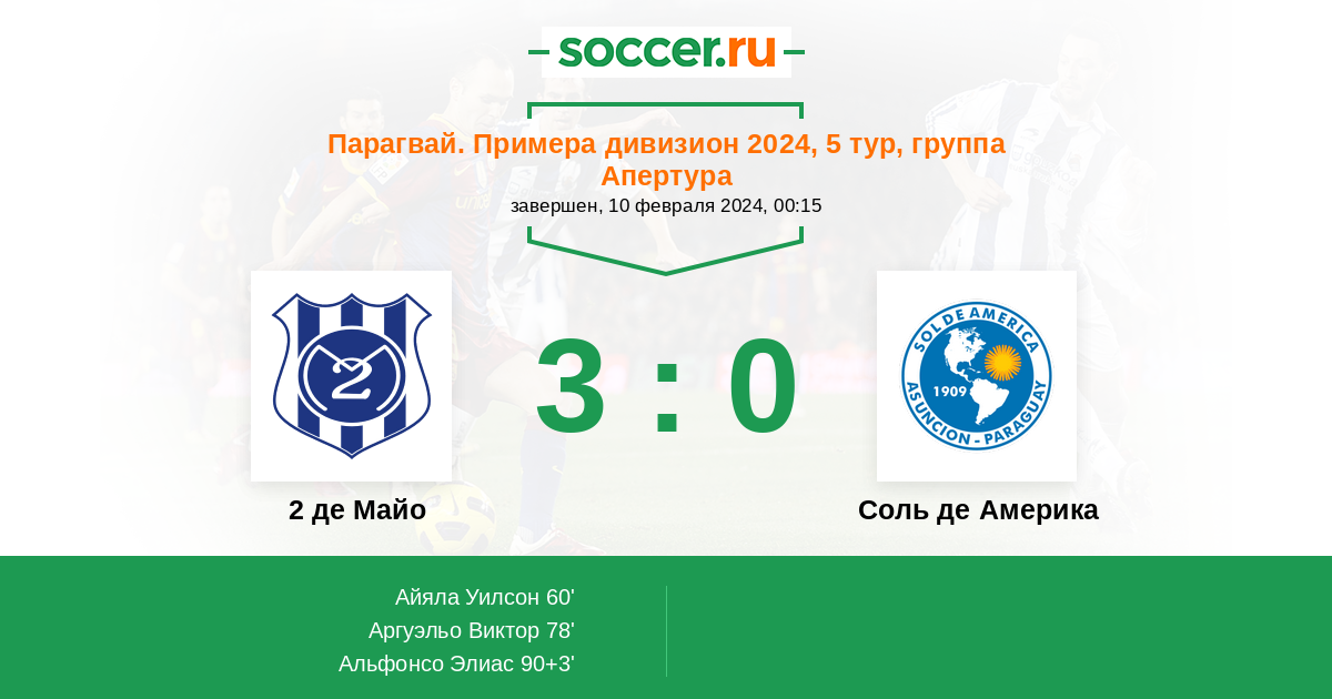 Протокол матча 2 де Майо против Соль де Америка