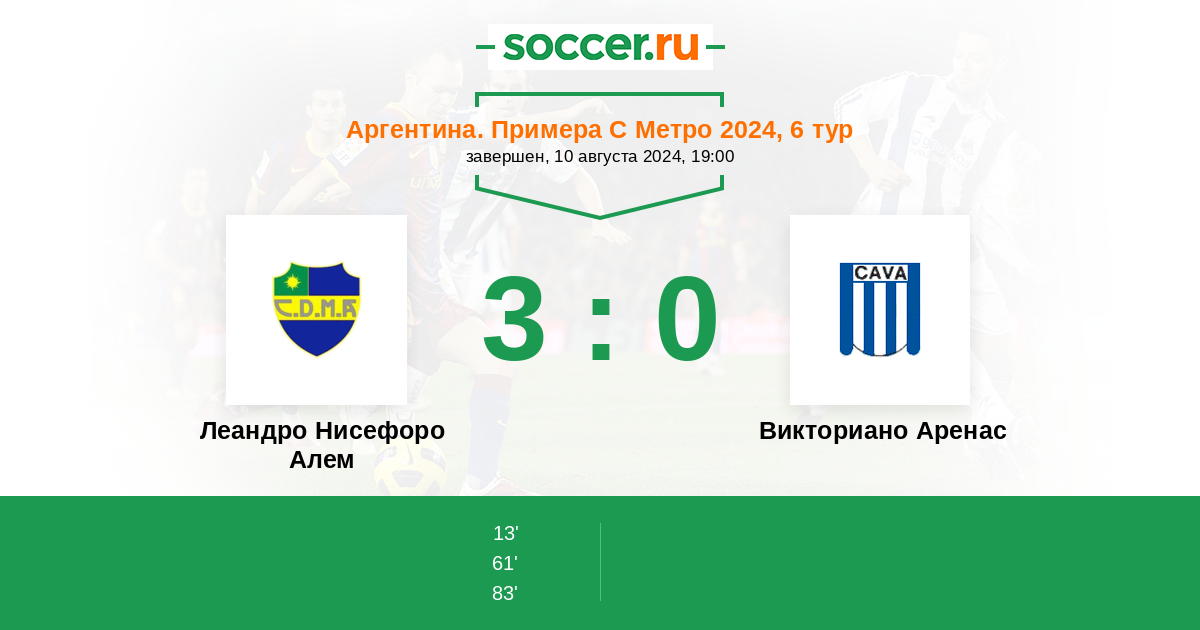 Протокол матча Леандро Нисефоро Алем против Викториано Аренас