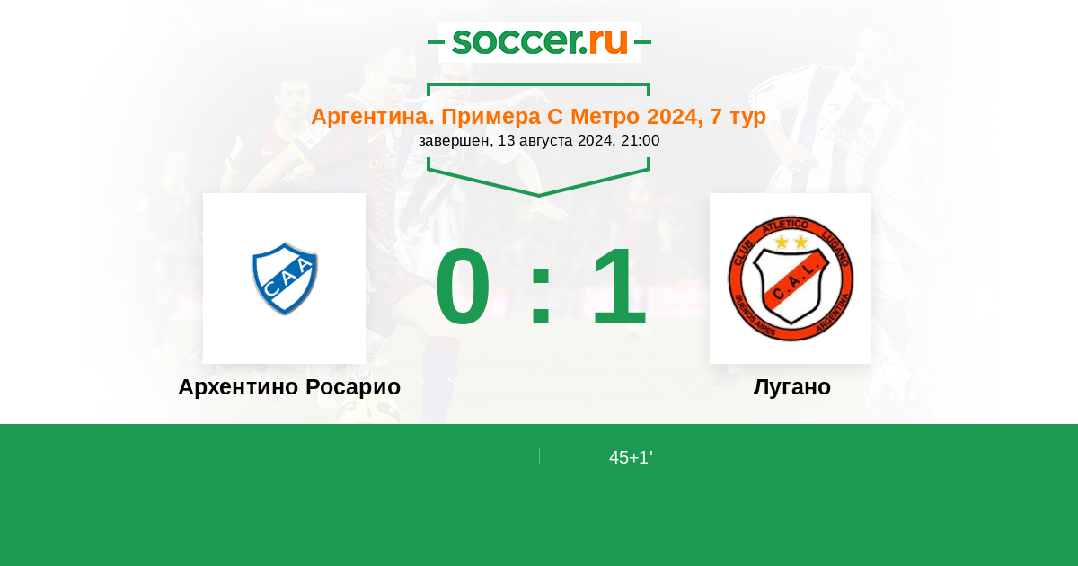 Протокол матча Архентино Росарио против Лугано