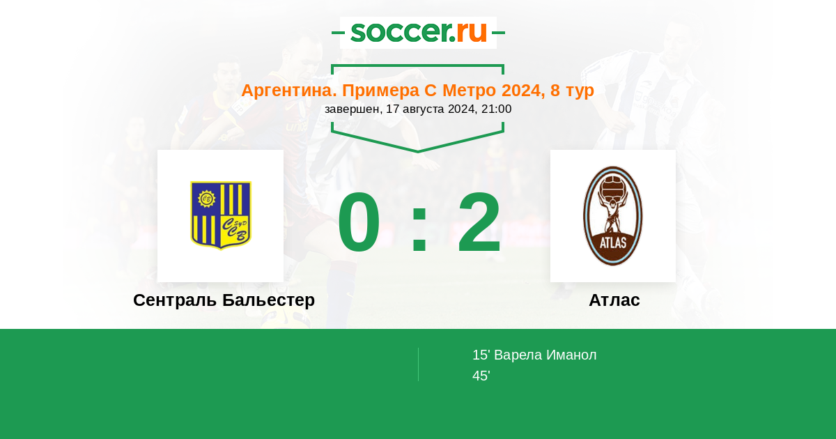 Протокол матча Сентраль Бальестер против Атлас