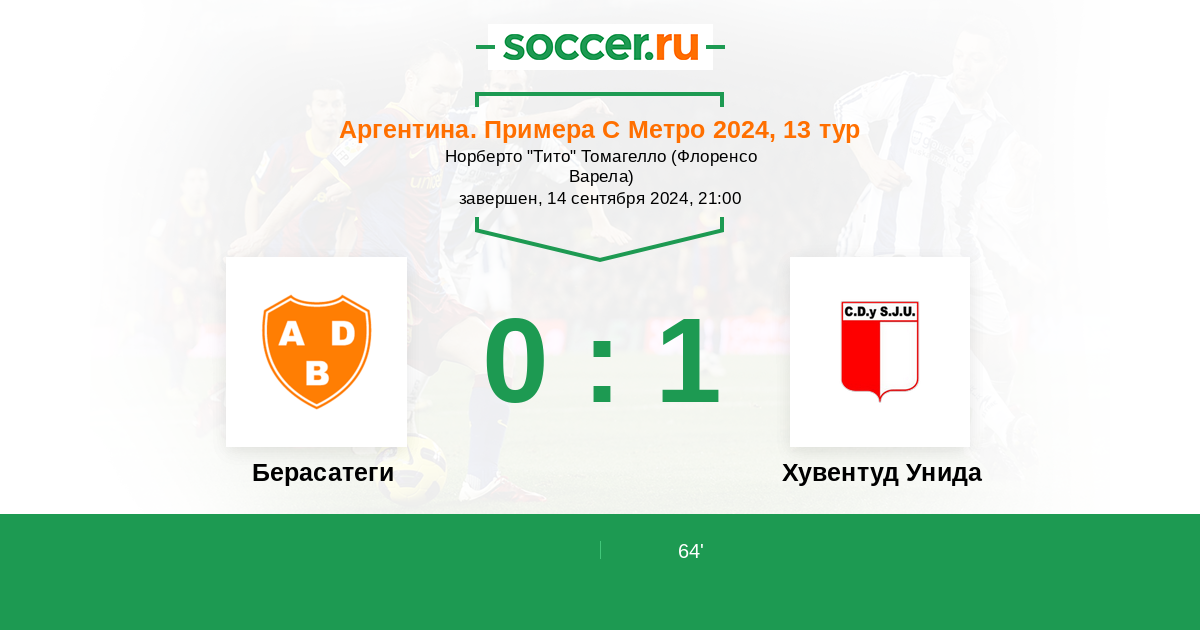Протокол матча Берасатеги против Хувентуд Унида