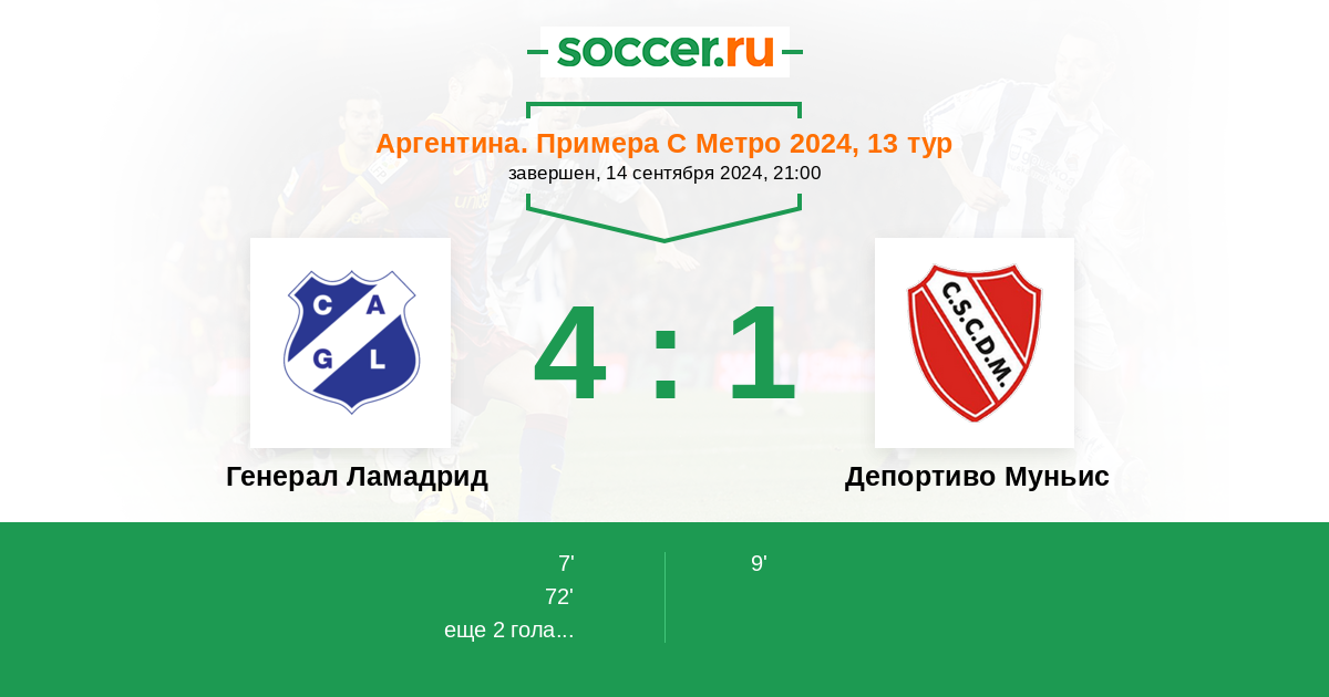 Протокол матча Генерал Ламадрид против Депортиво Муньис
