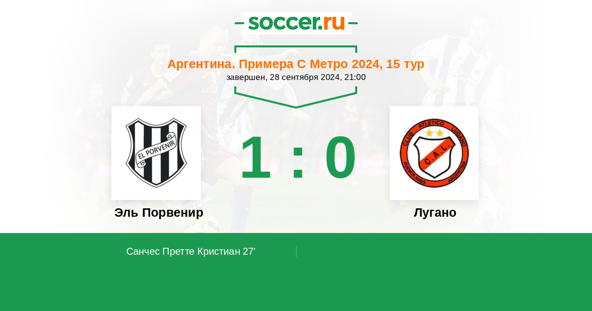 Протокол матча Эль Порвенир против Лугано