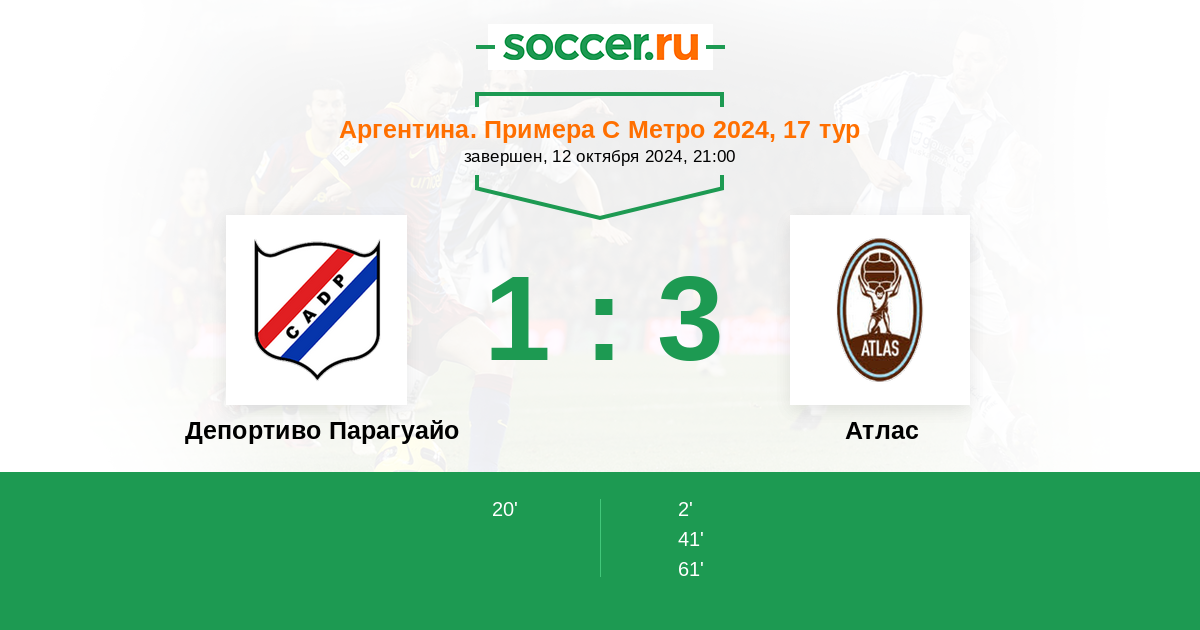 Протокол матча Депортиво Парагуайо против Атлас