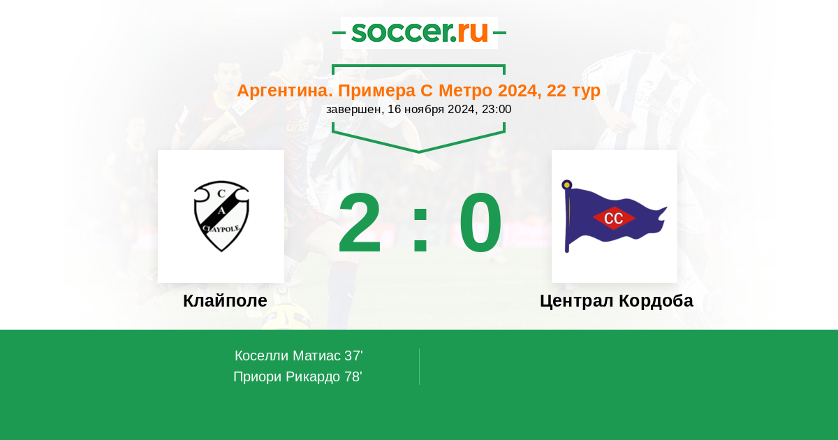 Протокол матча Клайполе против Централ Кордоба