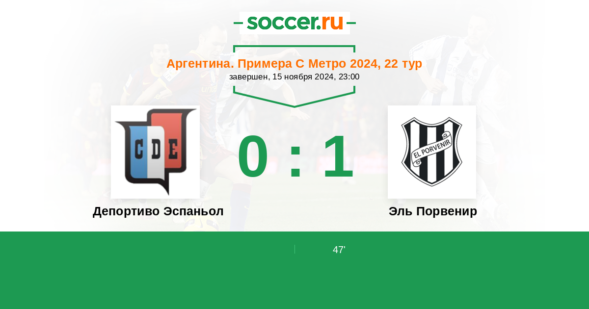 Протокол матча Депортиво Эспаньол против Эль Порвенир