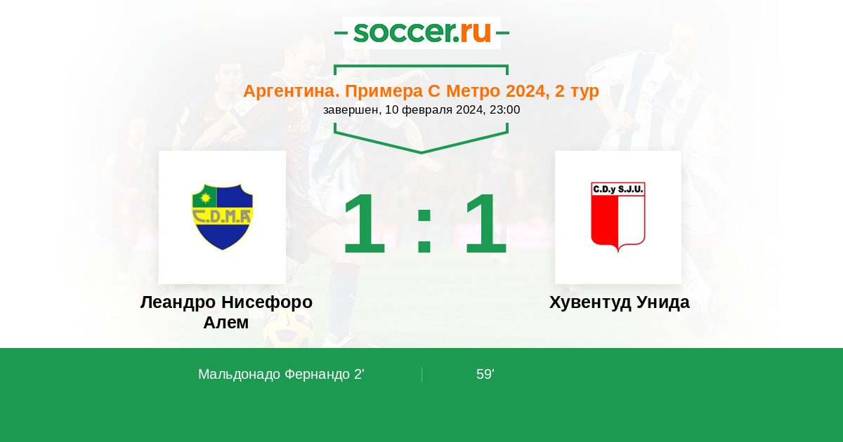 Протокол матча Леандро Нисефоро Алем против Хувентуд Унида