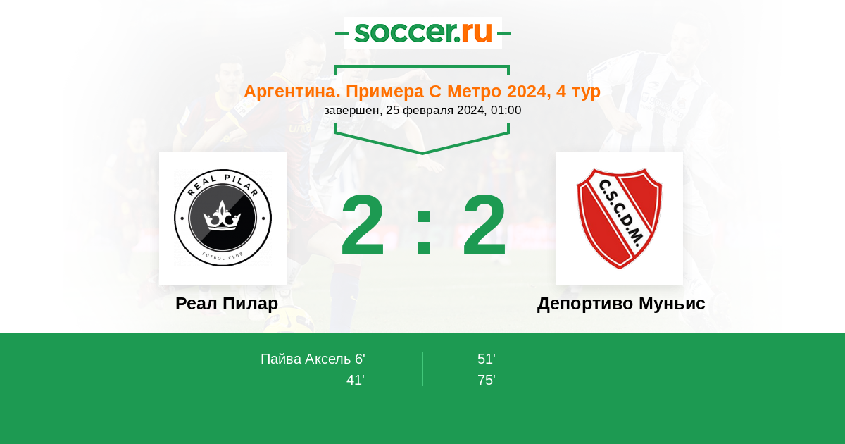 Протокол матча Реал Пилар против Депортиво Муньис